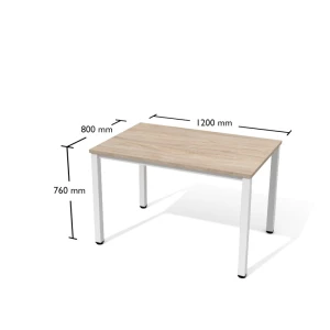 Biurko proste na konstrukcji metalowej. Blat prostokątny wykonany z płyty meblowej w klasie higieny E1.