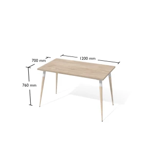 Stelaż biurka tworzy stalowy profil z toczonymi, stożkowymi nogami z naturalnego drewna bukowego pokrytego metodą olejowania (olej przezroczysty matowy).