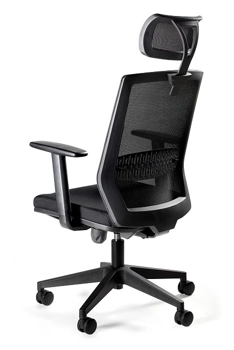 Nowoczesny fotel obrotowy z siatkowym oparciem.