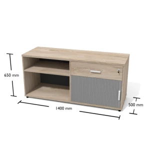 1-szufladowy z szafką żaluzjową oraz częścią otwartą.