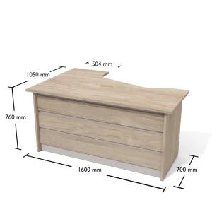 Blat i nogi z płyty o grubości 25 mm, osłona 18 mm wraz z boniowaniem 18 mm, regulacja wysokości na stopce ok 12 mm.