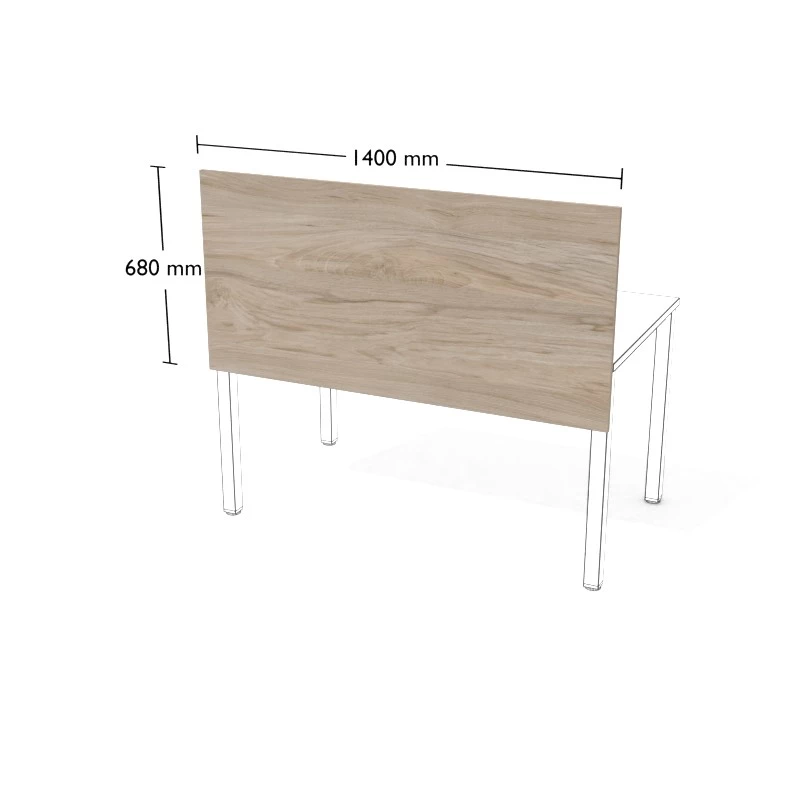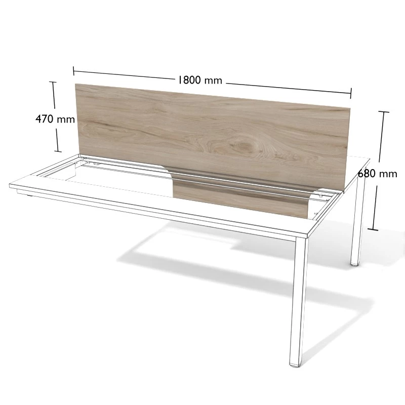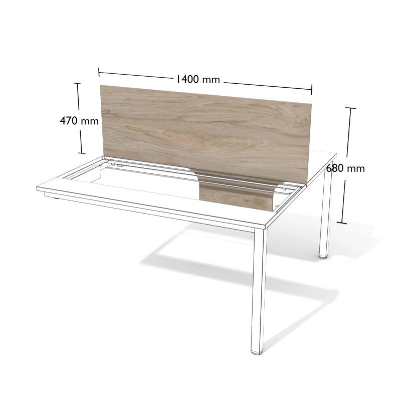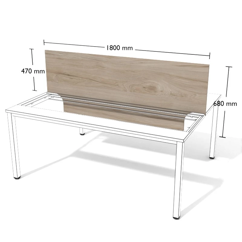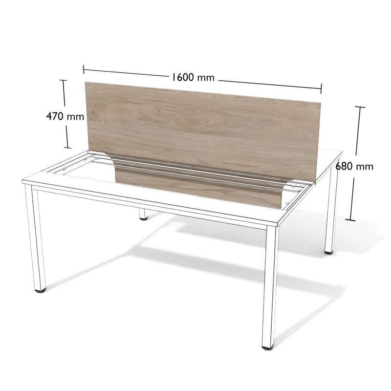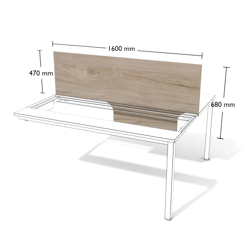 Przegroda z płyty meblowej do stanowisk podwójnych wolnostojących.