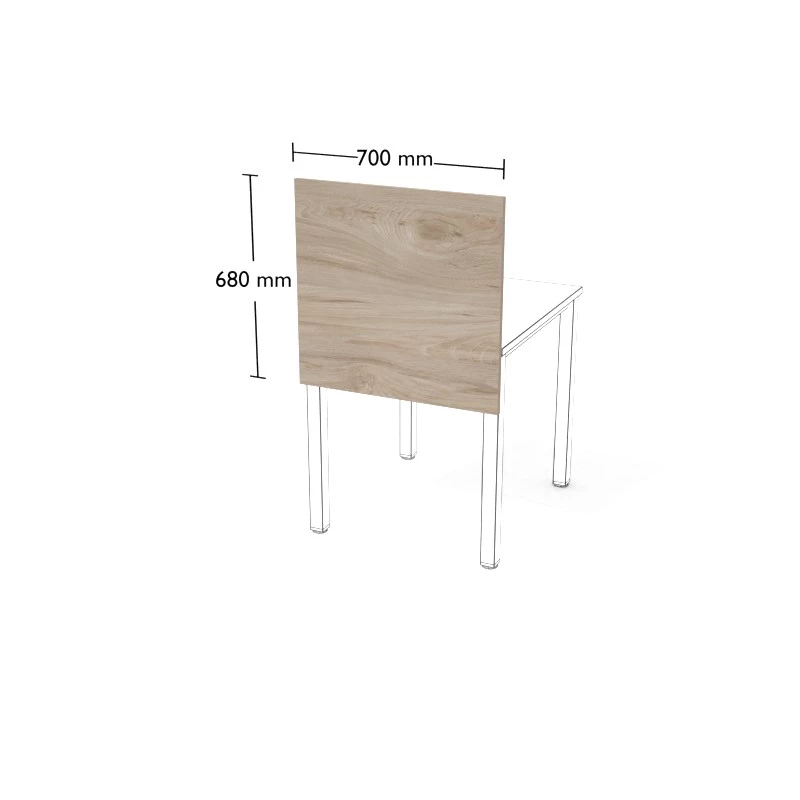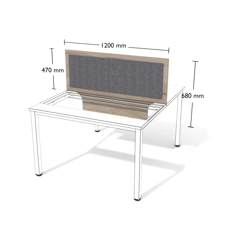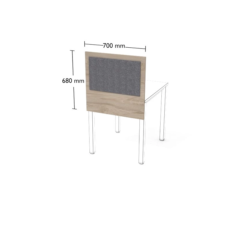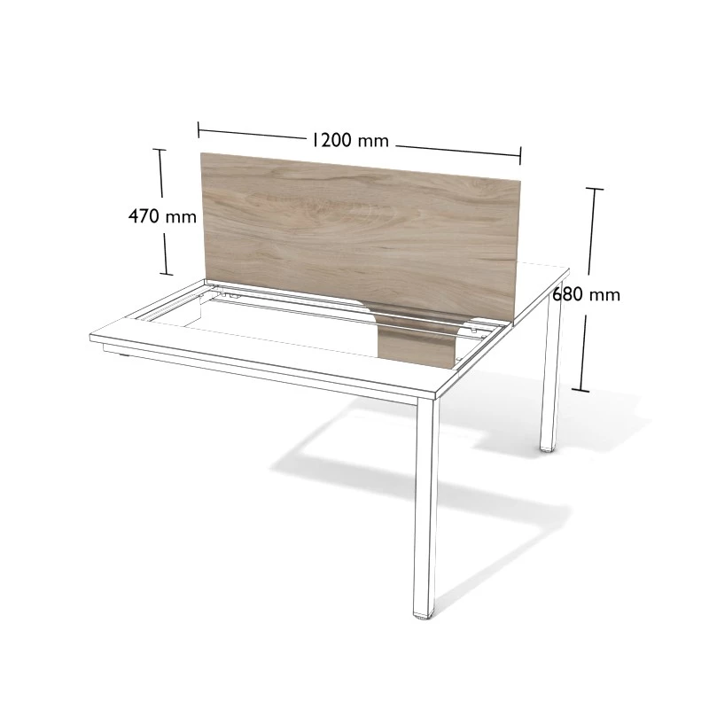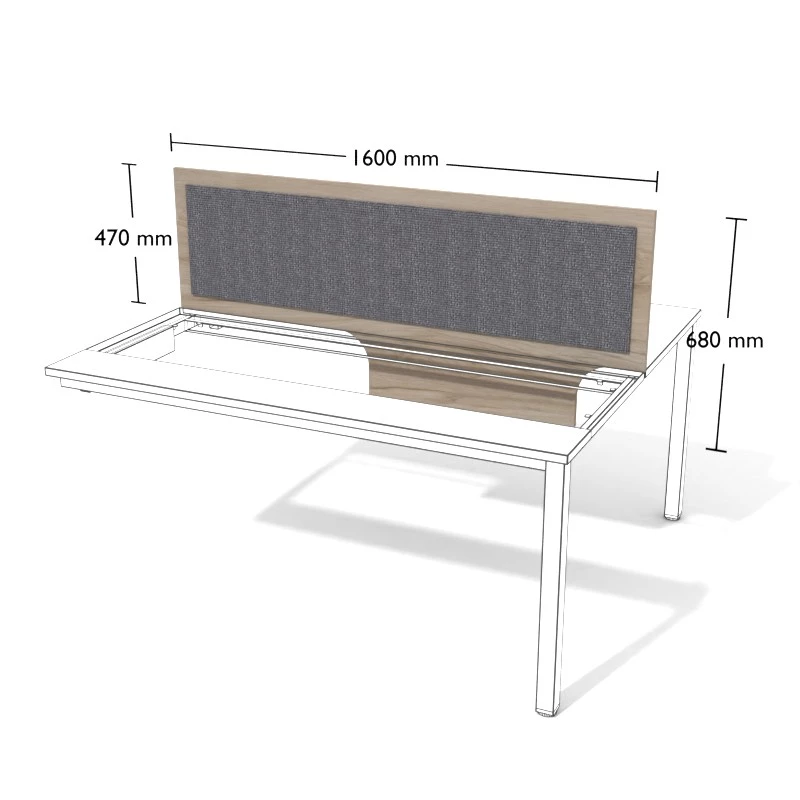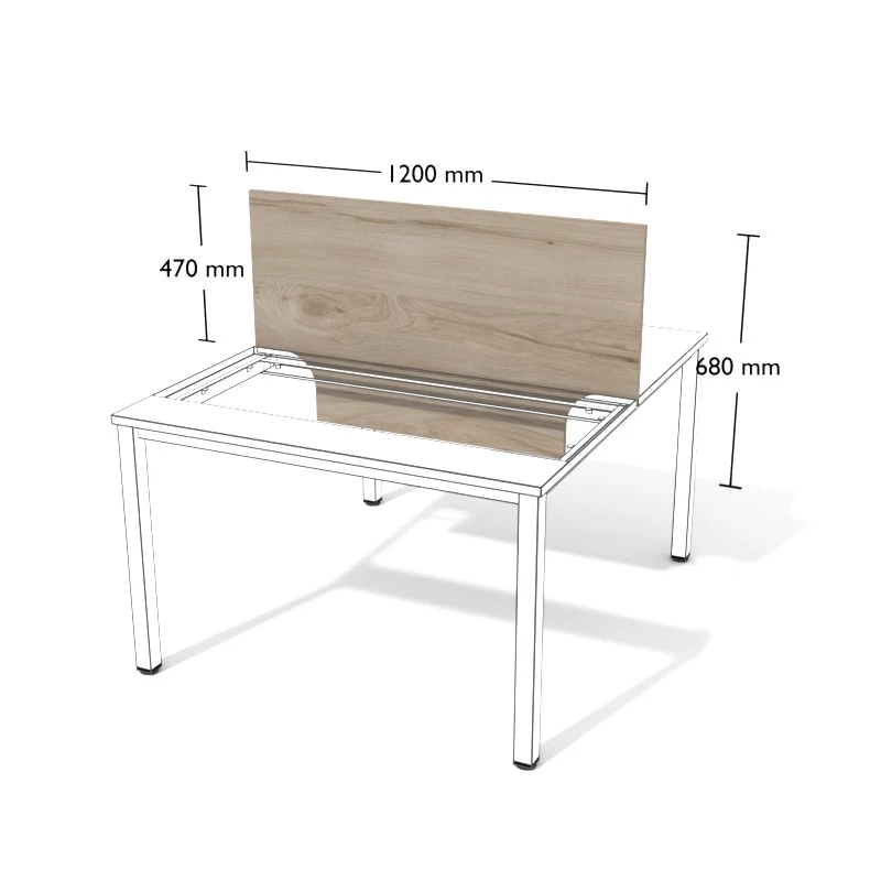 Przegroda z płyty meblowej do stanowisk podwójnych wolnostojących.