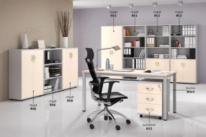 Modułowe szafy i regały umożliwiają wiele wariantów indywidualnej aranżacji pomieszczeń w biurach, gabinecie, pracowni czy mieszkaniu.