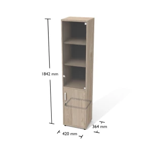 Regał aktowy wąski częściowo przeszklony.