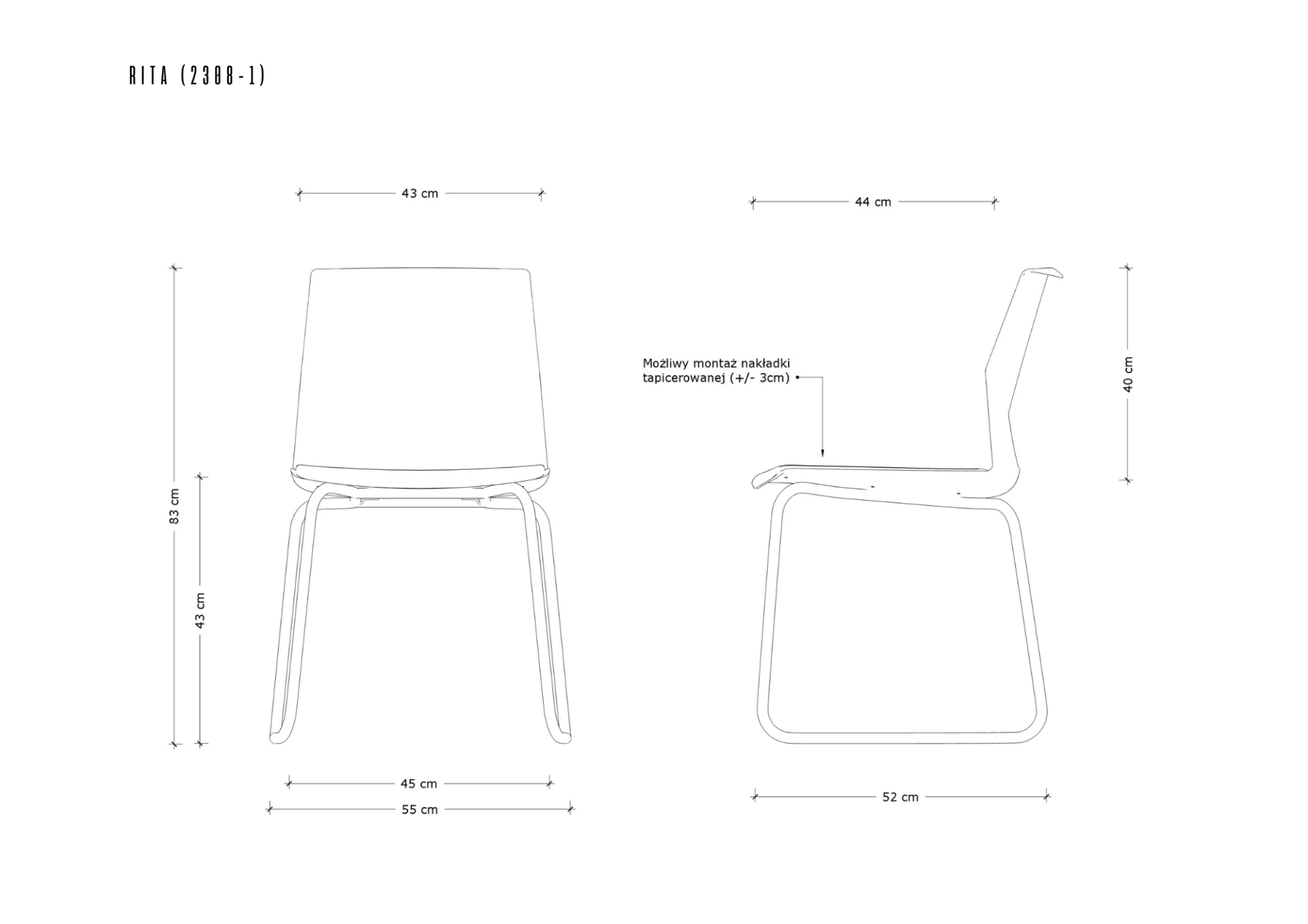 - Możliwość montażu nakładki tapicerowanej tkaniną lub ekoskórą (za dopłatą)