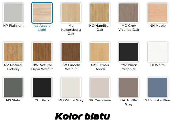 Na prezentowanej grafice poglądowej, stolik wyposażony w blat z płyty w kolorze Acacia Light.
